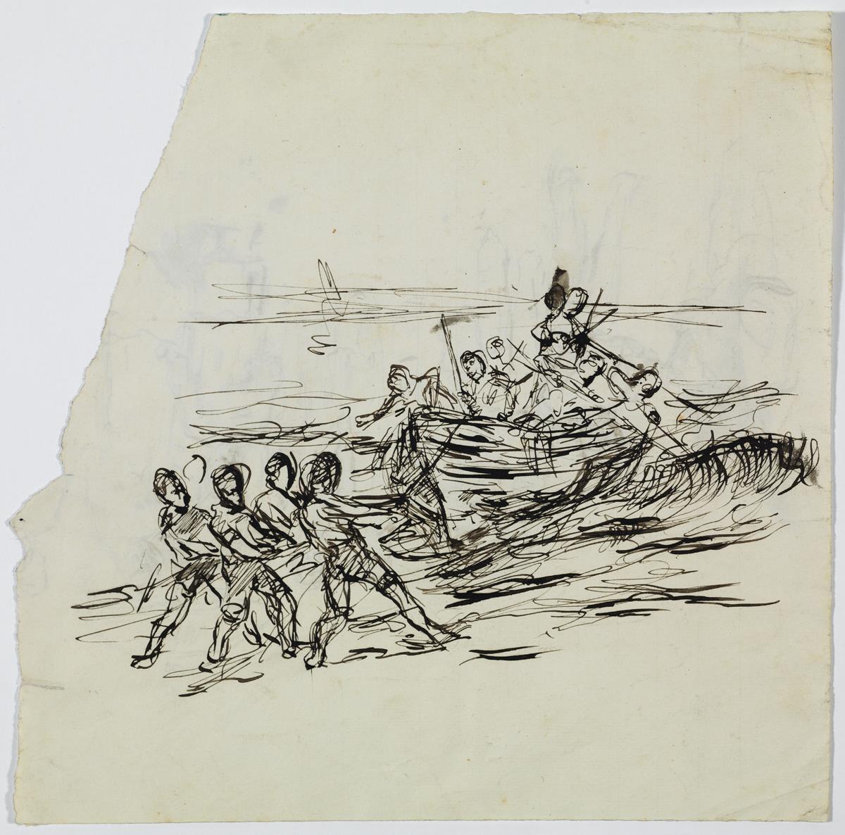 Stranded Fishing Boat Stranded Fishing Boat Stranded Fishing Boat Author Pablo Picasso Título Stranded Fishing Boat Execution place Barcelona Medium Pen and ink on paper Dimensions 22 cm x 22.4 cm Acquisition data Gift of Pablo Picasso, 1970 Inventory number MPB 110.673 ¿Necesitas una reproducción de esta obra? The entire documentation process is, by definition, a work in progress. If you have additional information on this register or spot any errors, please send us your comments. Collections Drawing Related artworks of The Collection Enllaç cap a obra Stranded Ship and Sketches of Hands Stranded Ship and Sketches of Hands