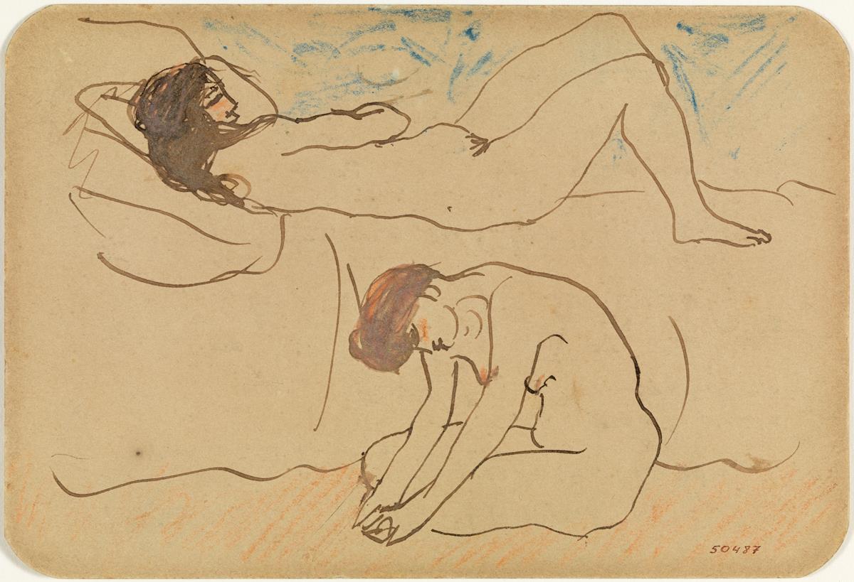 Pen and ink, wash and coloured pencils on a "Juñer Hnos. sucesores de Suari y Juñer" advertising postcard