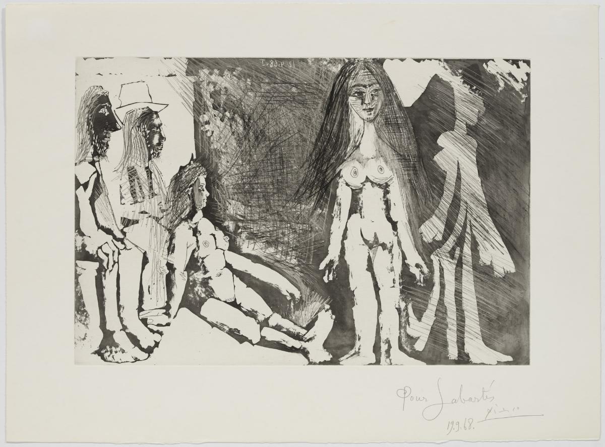 Aquatint, etching, drypoint and scraper on copper; printed on Rives vellum paper (Sabartés proof, II and final state)