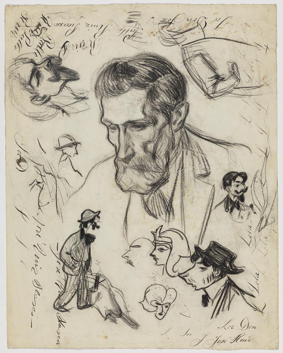 The Artist's Father, Joaquim Mir, Carles Casagemas and Various Caricatures