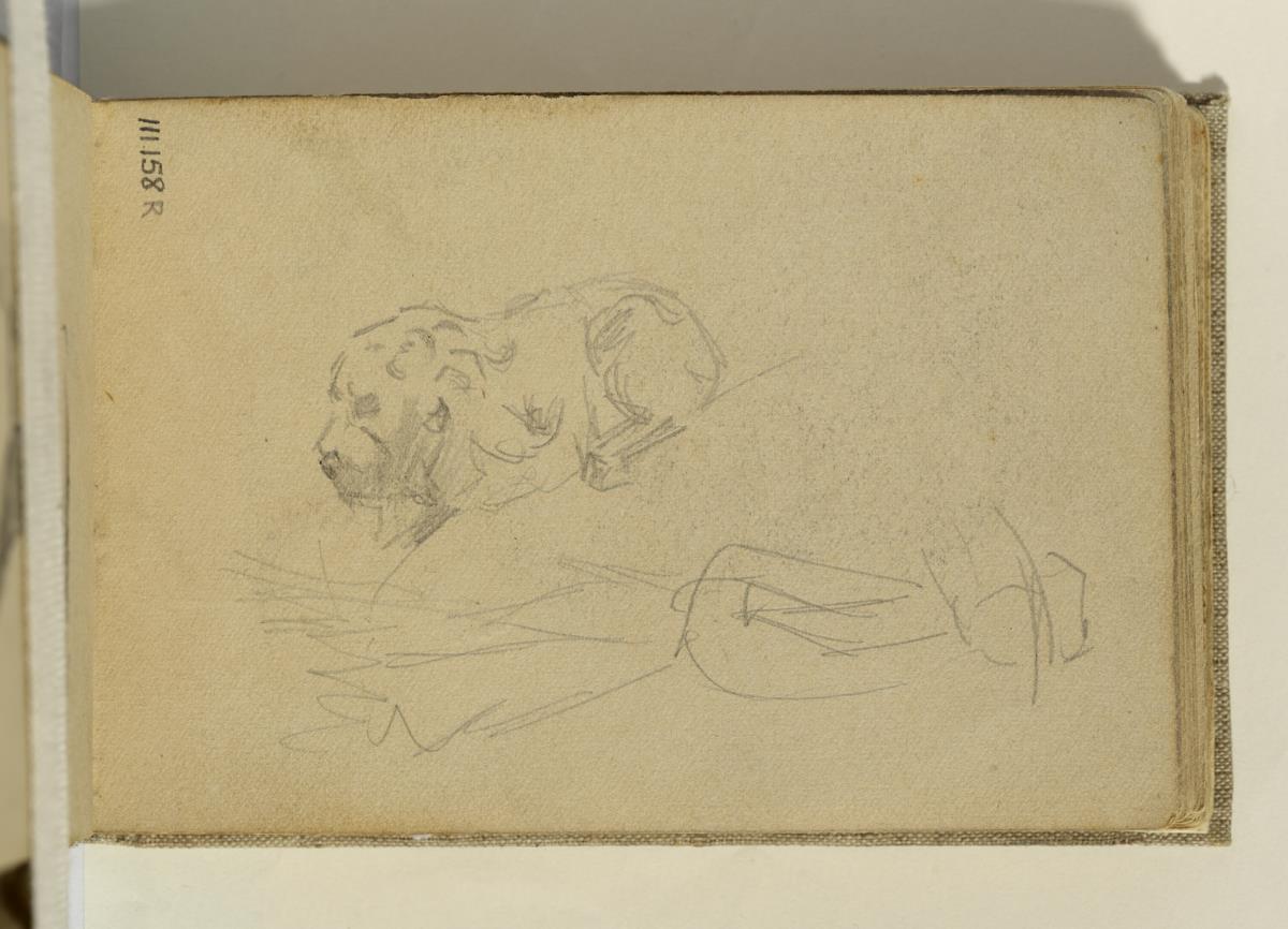Dog Lying and Study of a Woman Dog Lying and Study of a Woman Dog Lying and Study of a Woman Author Pablo Picasso Título Dog Lying and Study of a Woman Execution place Barcelona Medium Graphite pencil on paper Dimensions 8.1 cm x 12.2 cm Acquisition data Gift of Pablo Picasso, 1970 Inventory number MPB 111.158R ¿Necesitas una reproducción de esta obra? The entire documentation process is, by definition, a work in progress. If you have additional information on this register or spot any errors, please send us your comments. Collections Drawing Related artworks of The Collection Enllaç cap a obra A Coruña, Málaga and Barcelona Sketchbook, 1895-1896 A Coruña, Málaga and Barcelona Sketchbook, 1895-1896 1896
