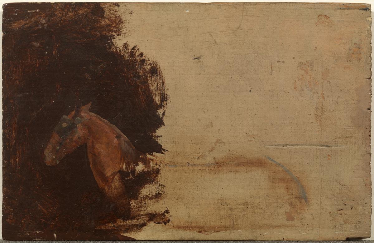 Horse Horse 1896 Horse Author Pablo Picasso Título Horse Execution place Spain Date 1896 Medium Oil on wood Dimensions 10 cm x 15.6 cm Acquisition data Gift of Pablo Picasso, 1970 Inventory number MPB 110.145 ¿Necesitas una reproducción de esta obra? The entire documentation process is, by definition, a work in progress. If you have additional information on this register or spot any errors, please send us your comments. Collections Painting