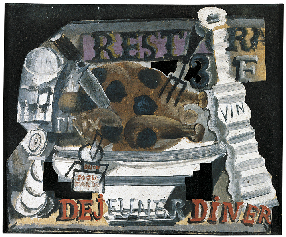 Pablo Picasso. Restaurant. Paris, spring 1914. Huile sur toile découpée collée sur du verre. 42 x 34 cm. Zervos II - 347 (Prendre titre). Fundación Almine y Bernard Ruiz-Picasso para el Arte FABA in temporary deposit at Museo Picasso Málaga ©FABA, photographer unknown, all rights reserved