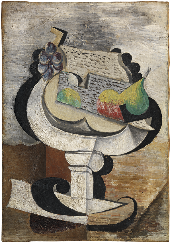 Pablo Picasso. Frutero. Pintura sobre tela. Junio-noviembre del 1917. Óleo sobre tela. 40 x 28 cm. 58 x 46 x 3 cm. Inscripción: 6 / P al revers, al bastidor, estampat o realitzat amb una plantilla, amb tinta negra. Donació Picasso, Pablo, 1970. MPB 110.029 © Sucesión Pablo Picasso, VEGAP, Madrid 2018