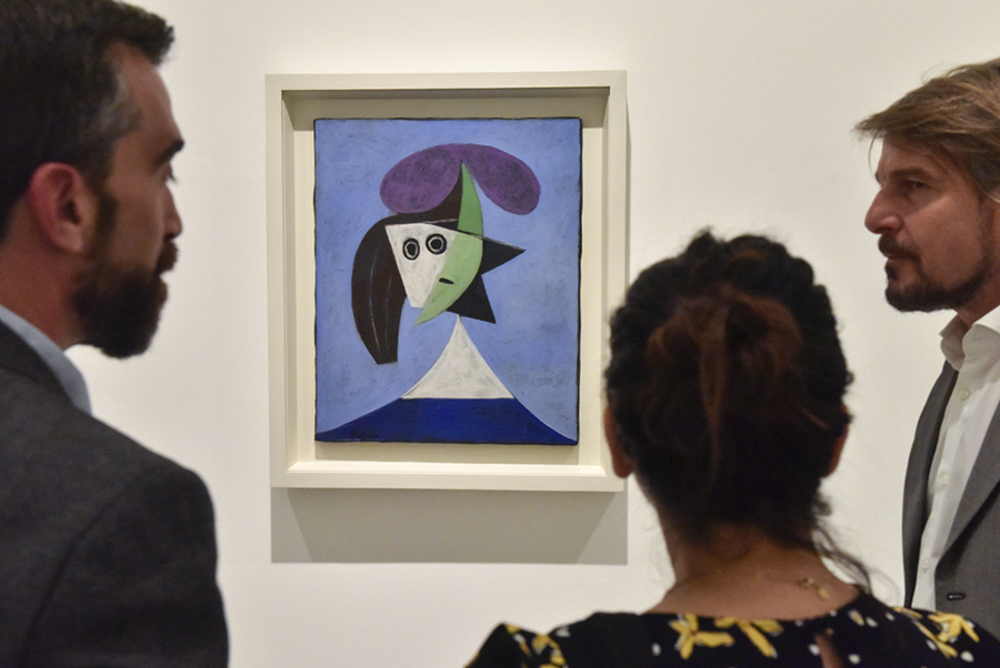 De manera que nos hallamos ante una Marie-Thérèse Walter afable y voluptuosa, cuyas formas modeladas y curvas representadas por el artista evocan su sensualidad. A continuación, un retrato de Nusch Éluard, que despierta en el espectador la sensación de translucidez y debilidad del cuerpo de la modelo, proyectado con formas puntiagudas y angulares. Y termina con Dora Maar y la tensión que desprende su postura firme, con dimensiones desmedidas y en la intensidad de los tonos oscuros.