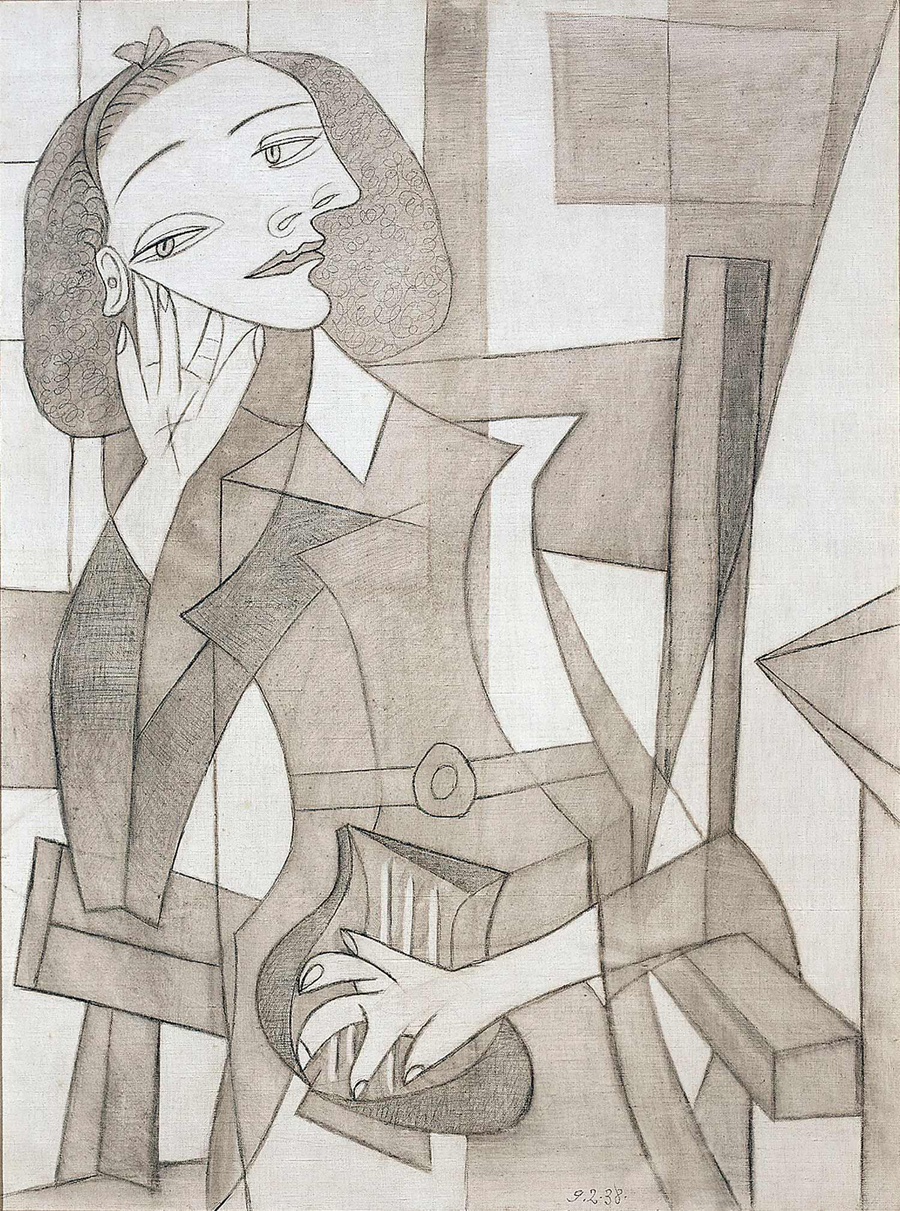 Dora Maar sentada. 13 de mayo del 1938. Tinta, aguada y oleo sobre papel encolado sobre tela, 689 x 625 mm. Tate, adquisición 1960.