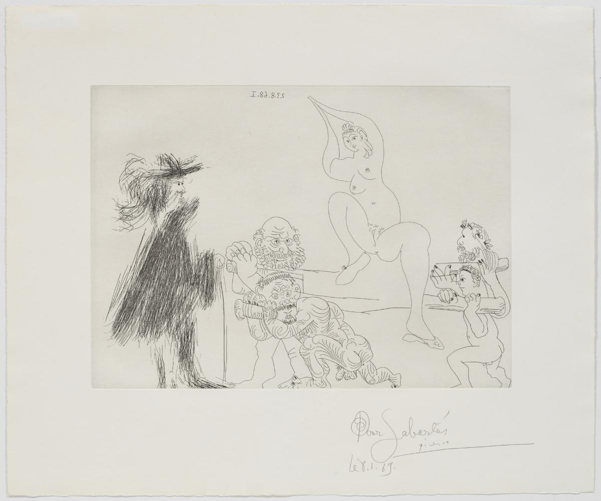 Aguafuerte sobre cobre; estampado sobre papel vitela Rives (prueba Sabartés)