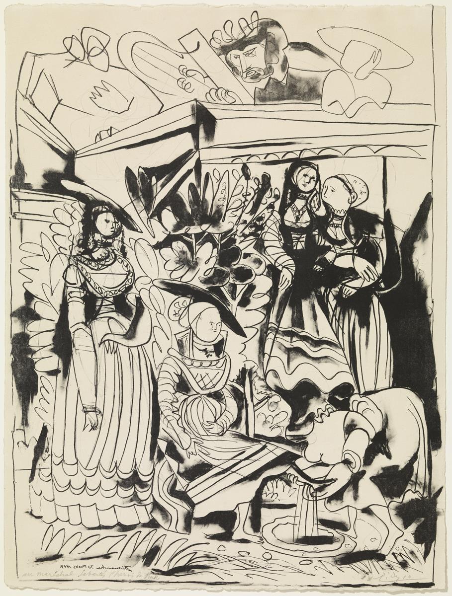 Litografía. "Lavis" y pluma sobre zinc; estampado sobre papel vitela Arches (prueba Sabartés, I estado)