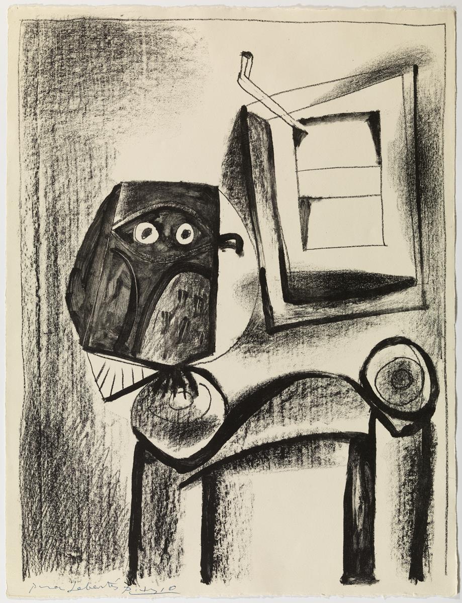 Litografía. "Lavis", lápiz litográfico y rascador sobre papel reporte transferido sobre piedra; estampado sobre papel vitela Arches (prueba Sabartés)