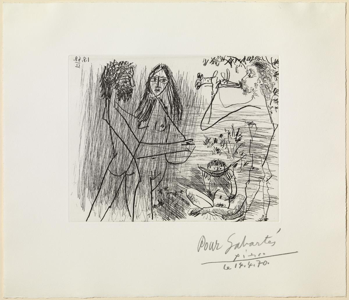 Aguafuerte sobre cobre; estampado sobre papel vitela Rives (prueba Sabartés)