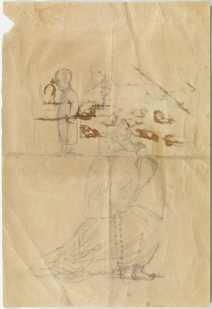 Franciscano rezando y un niño Franciscano rezando y un niño Franciscano rezando y un niño Autor Pablo Picasso Título Franciscano rezando y un niño Lugar de ejecución A Coruña Técnica Lápiz grafito sobre papel Dimensiones 31 cm x 21.1 cm Datos de ingreso Donación Pablo Picasso, 1970 Número de registro MPB 110.477 ¿Necesitas una reproducción de esta obra? Todo proceso de documentación es, por definición, un trabajo en desarrollo. Si tienes información adicional sobre este registro o detectas algún error, envíanos tus comentarios, por favor. Obras de La Colección relacionadas Enllaç cap a obra Dos croquis Dos croquis 1892
