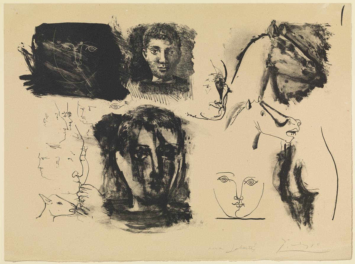 Litografía. "Lavis", pluma y rascador sobre piedra; estampado sobre papel vitela Arches (prueba Sabartés)