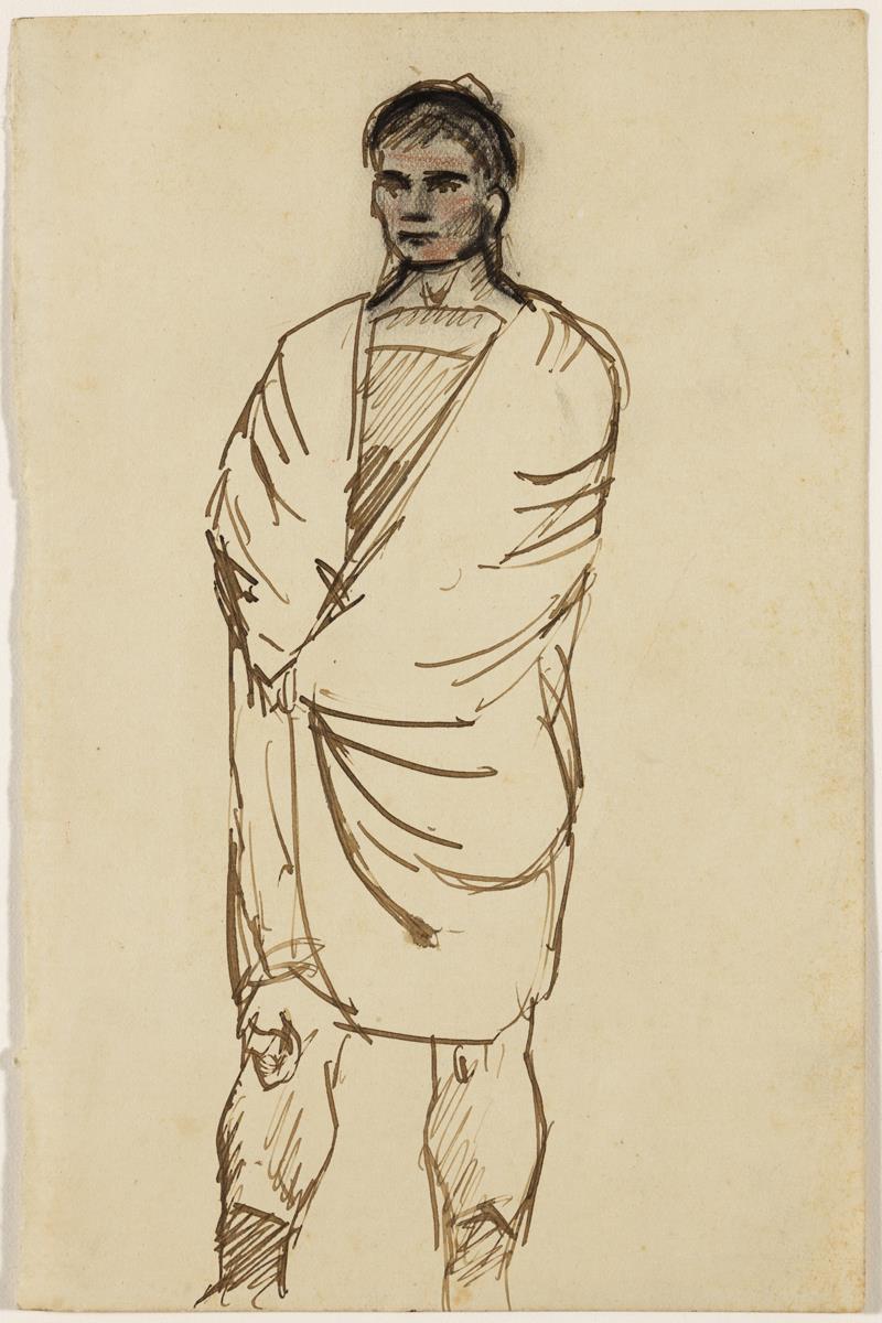 Tinta a pluma, lápiz grafito y lápiz de colores sobre papel verjurado