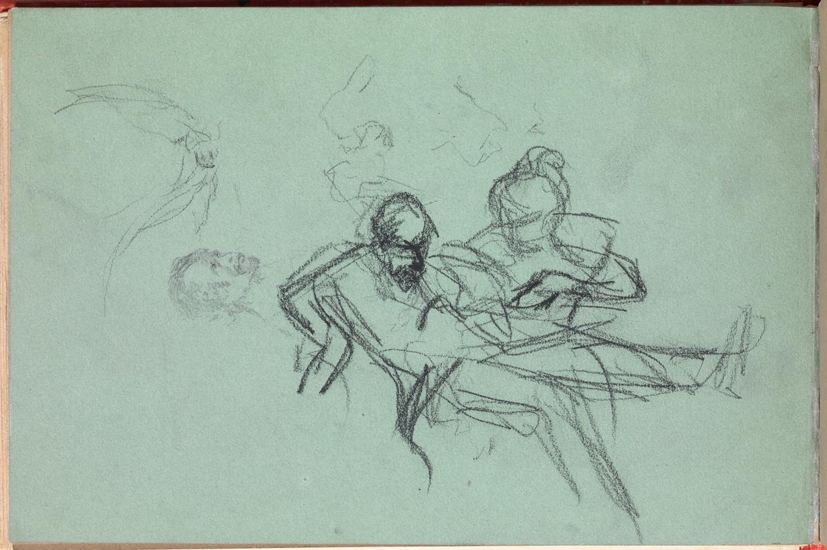Hombre recostado y mujer, y otros croquis