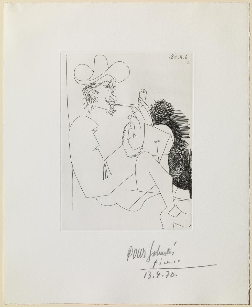 Aguafuerte sobre cobre; estampado sobre papel vitela Rives (prueba Sabartés)