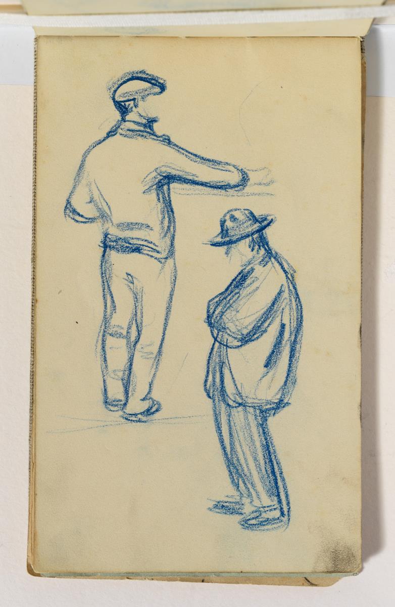 Hombres de pie Hombres de pie Hombres de pie Autor Pablo Picasso Título Hombres de pie Lugar de ejecución Barcelona Técnica Lápiz azul sobre papel Dimensiones 19.2 cm x 11.9 cm Datos de ingreso Donación Pablo Picasso, 1970 Número de registro MPB 111.538 ¿Necesitas una reproducción de esta obra? Todo proceso de documentación es, por definición, un trabajo en desarrollo. Si tienes información adicional sobre este registro o detectas algún error, envíanos tus comentarios, por favor. Obras de La Colección relacionadas Enllaç cap a obra Álbum de Barcelona, 1899 Álbum de Barcelona, 1899