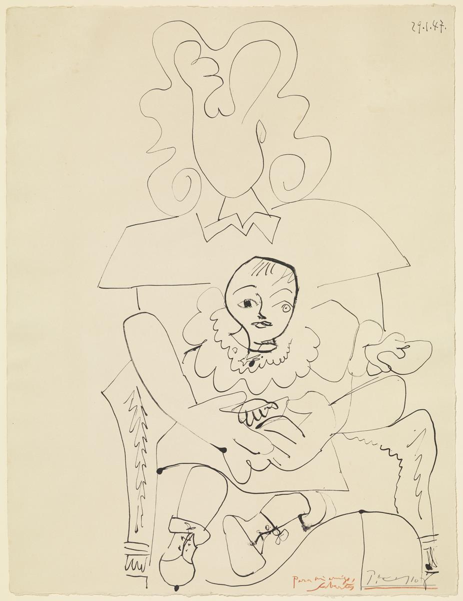 Litografía. Pluma sobre papel reporte transferido sobre piedra; estampado sobre papel vitela Arches (prueba Sabartés)