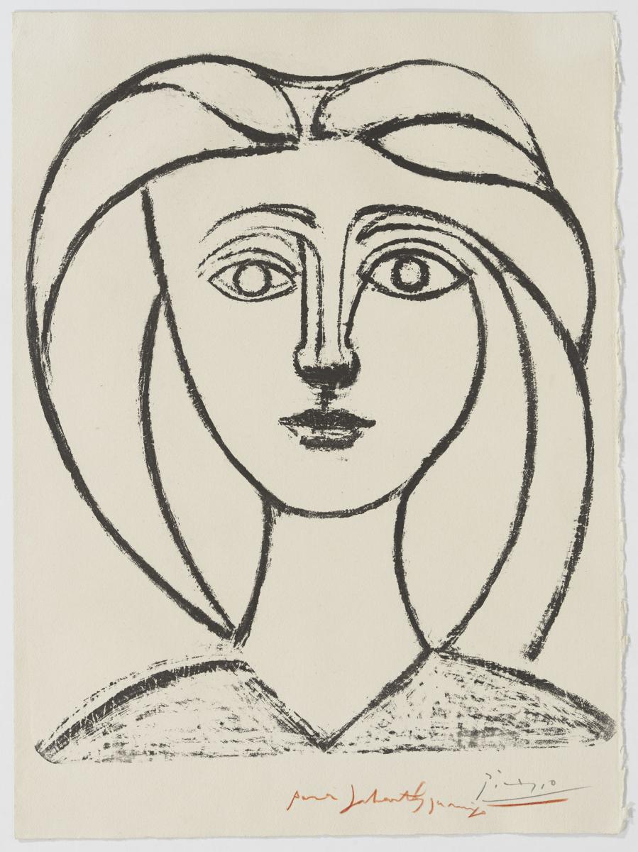 Litografía. Lápiz litográfico y rascador sobre piedra; estampado sobre papel vitela Arches (prueba Sabartés, IV estado y definitivo)