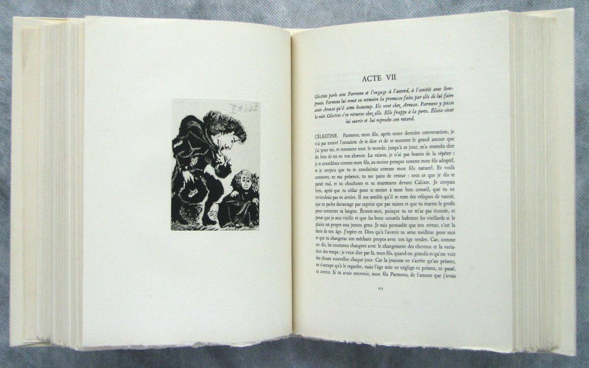 Aguatinta al azúcar y punta seca (fecha) sobre cobre parcialmente engrasado; estampado sobre papel vitela Rives (prueba Sabartés)