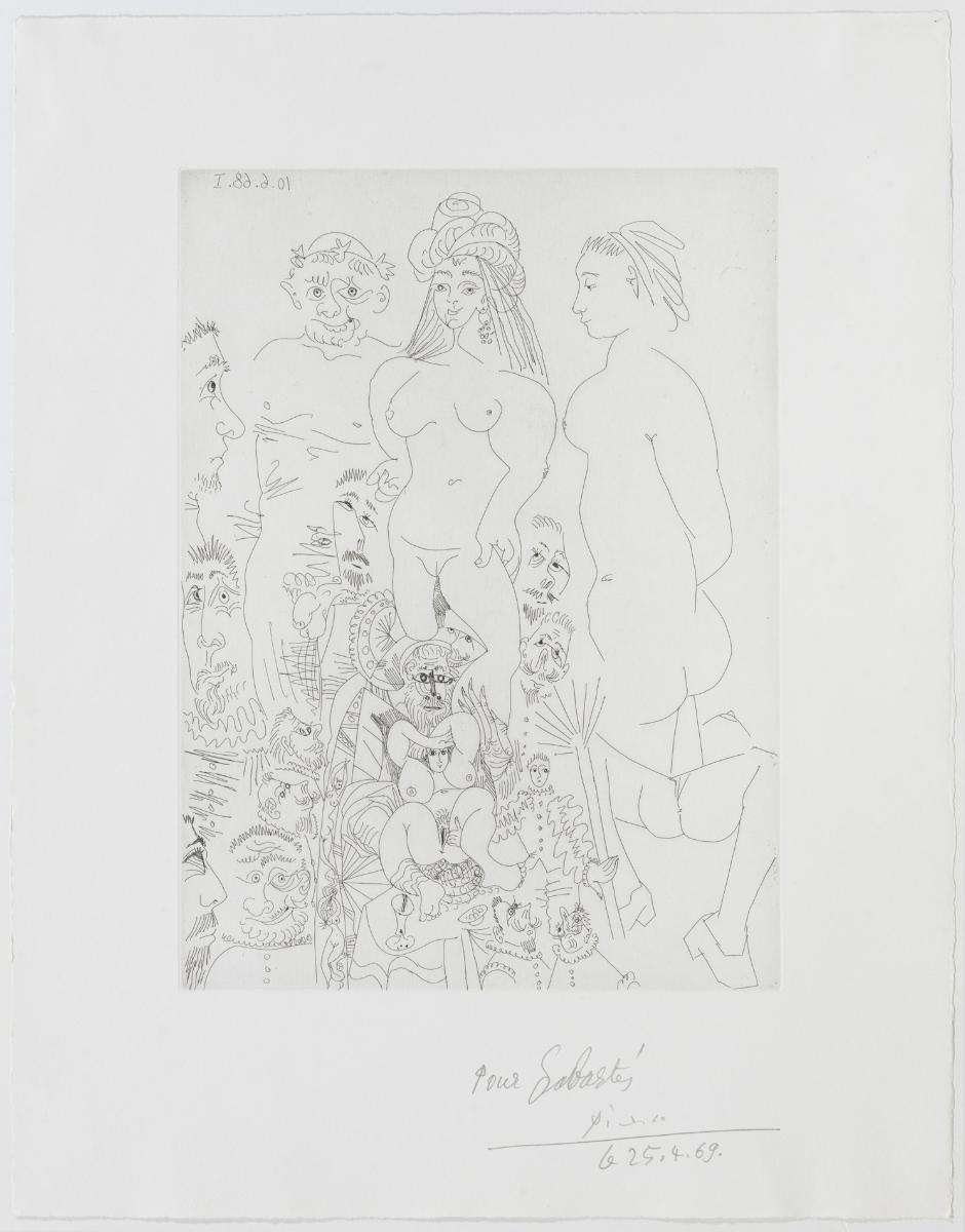 Aguafuerte sobre cobre; estampado sobre papel vitela Rives (prueba Sabartés)