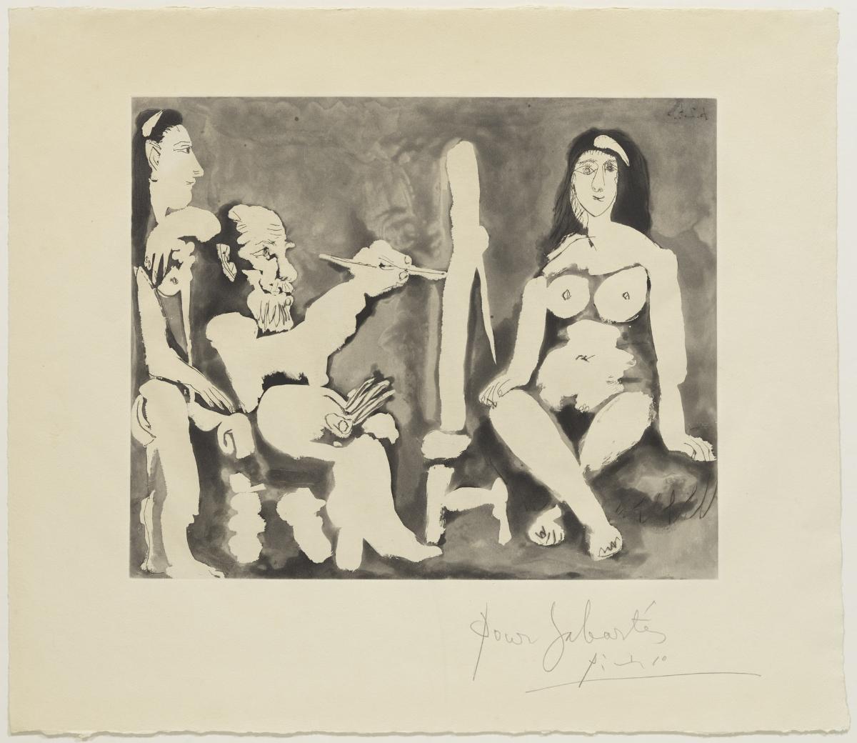 Aguatinta (reservas al barniz y mordida directa con pincel en el graneado) y aguafuerte (en algunos lugares la punta afecta directamente la plancha dando el efecto de punta seca) sobre cobre; estampado sobre papel vitela Richard de Bas (prueba Sabartés)