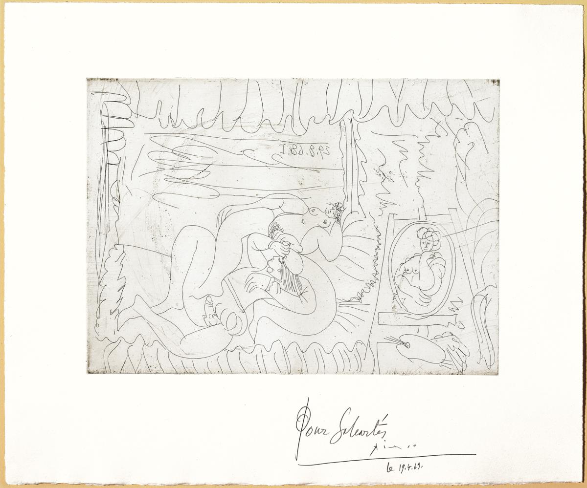 Aguafuerte sobre cobre; estampado sobre papel vitela Rives (prueba Sabartés)