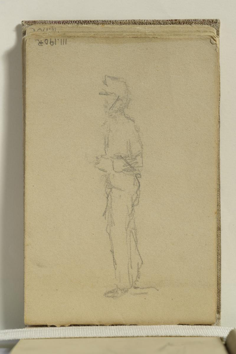 Soldado Soldado Soldado Autor Pablo Picasso Título Soldado Lugar de ejecución Barcelona Técnica Lápiz grafito sobre papel Dimensiones 12.2 cm x 8.1 cm Datos de ingreso Donación Pablo Picasso, 1970 Número de registro MPB 111.190R ¿Necesitas una reproducción de esta obra? Todo proceso de documentación es, por definición, un trabajo en desarrollo. Si tienes información adicional sobre este registro o detectas algún error, envíanos tus comentarios, por favor. Obras de La Colección relacionadas Enllaç cap a obra Álbum de Madrid, Málaga y Barcelona, 1895-1896 Álbum de Madrid, Málaga y Barcelona, 1895-1896 1896