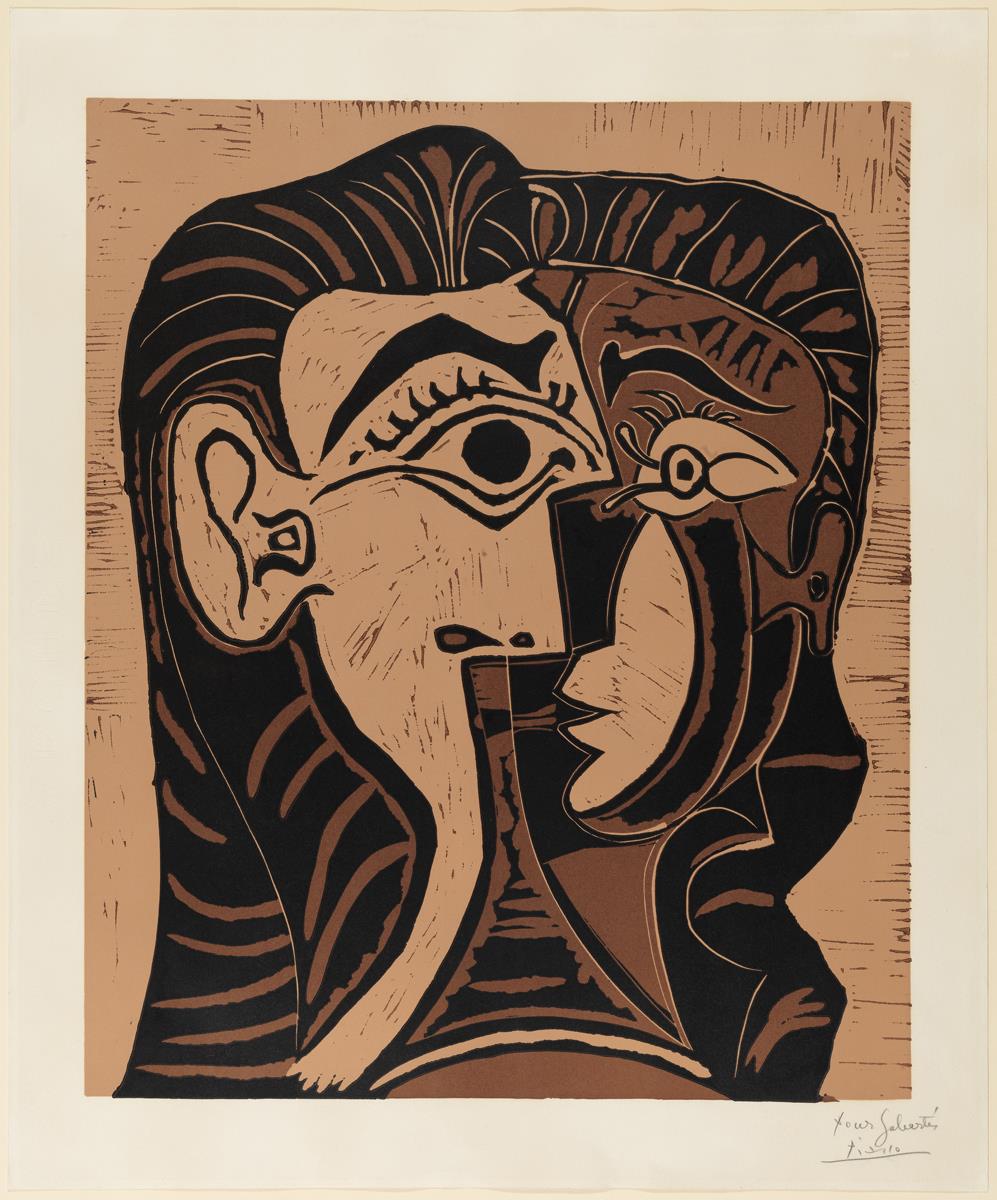 Grabado con gubia y navaja sobre linóleo; estampado en tres colores sobre papel vitela Arches (prueba Sabartés, III estado y definitivo)