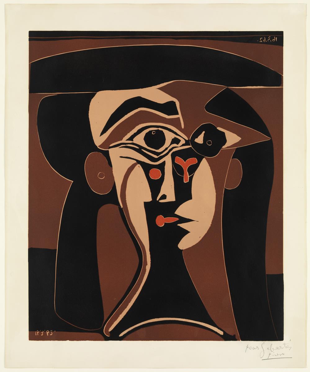 Grabado con gubia sobre linóleo; estampado en cuatro colores sobre papel vitela Arches (prueba Sabartés, III estado y definitivo)