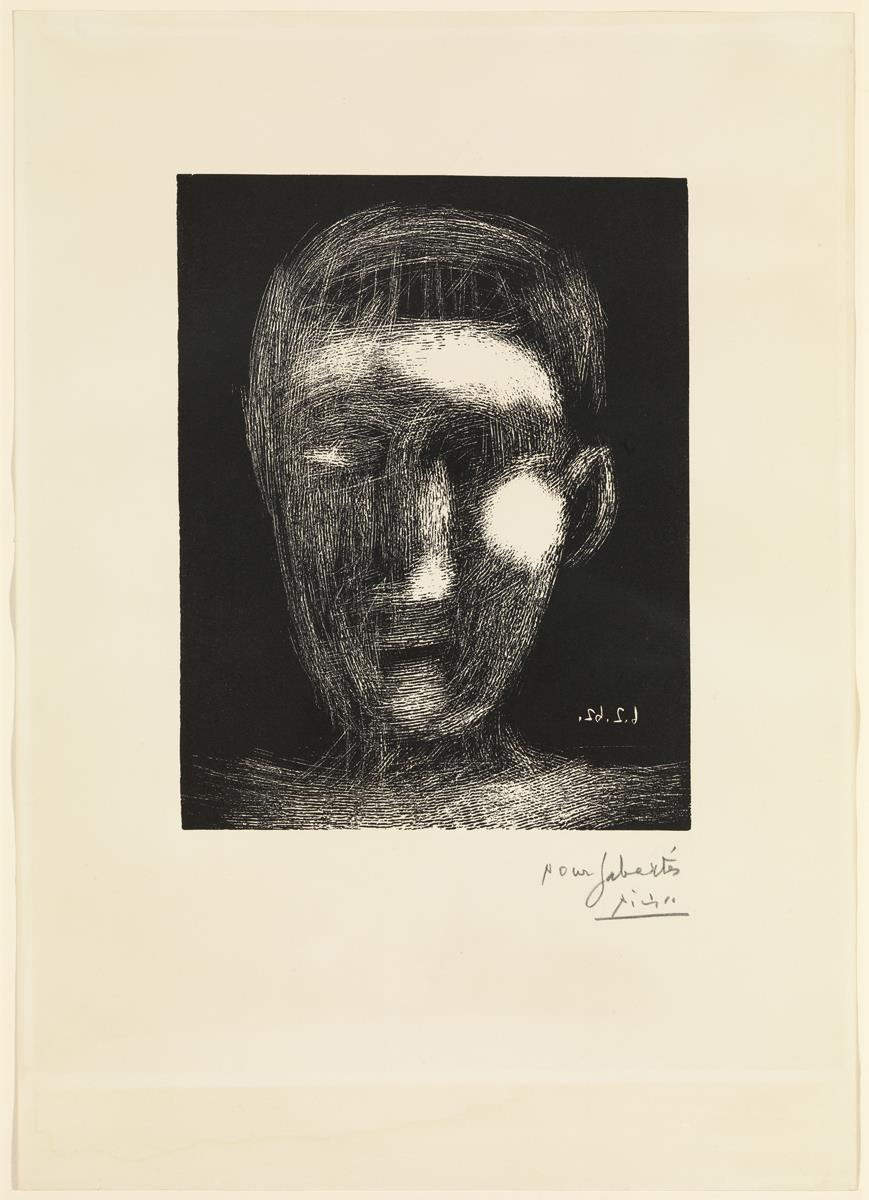 Grabado con navaja (fecha) y rascador sobre linóleo; estampado sobre papel vitela Arches (prueba Sabartés, II estado y definitivo)