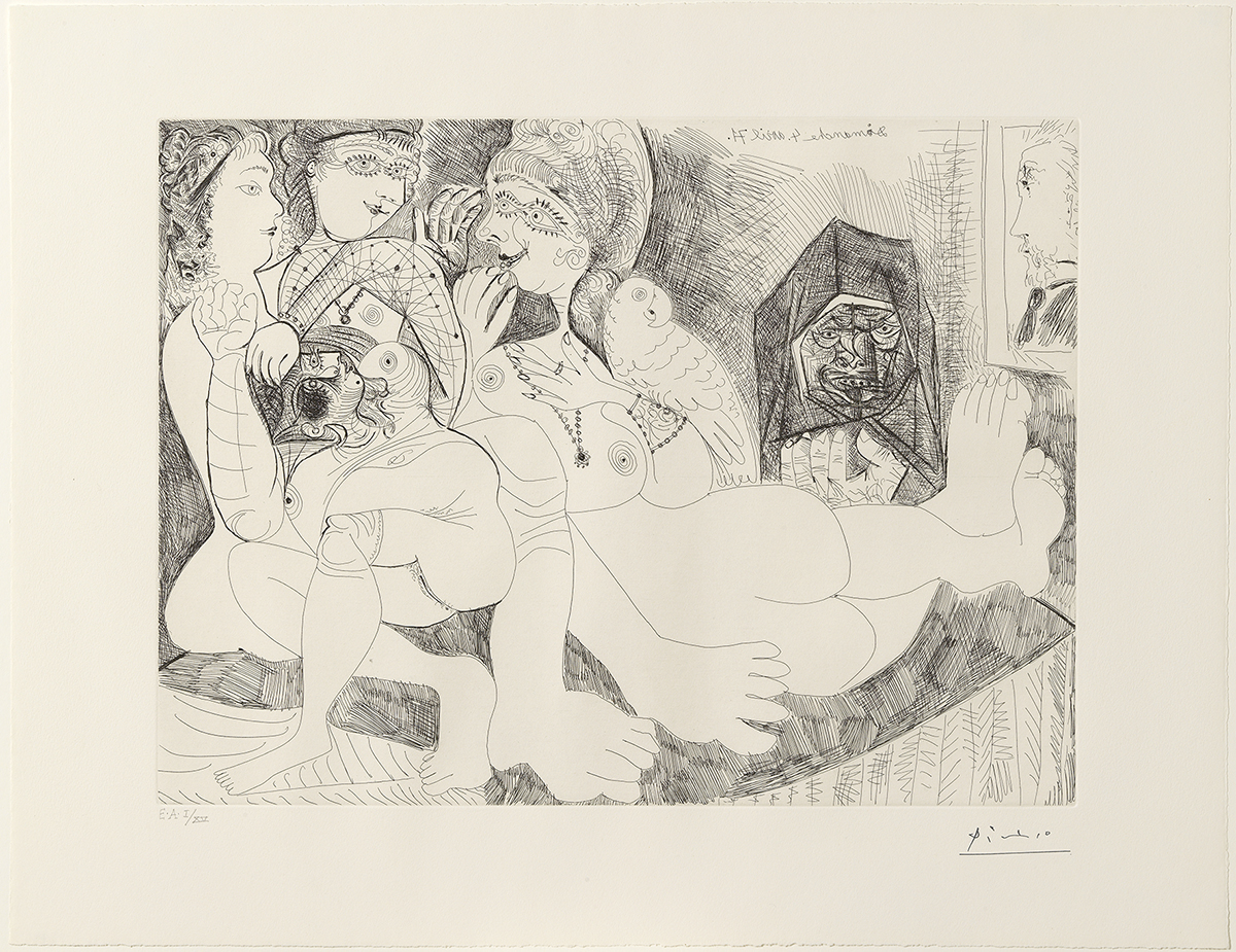 Aquesta sèrie de gravats, que l’artista realitzà entre 1968 i 1972, són un exemple paradigmàtic de l’obra picassiana tardana i de les seves experimentacions i provatures en diverses tècniques de gravat. Temàticament, aquest conjunt d’obres podria resumir-se com una gran tragicomèdia final, on les citacions literàries, artístiques i autobiogràfiques es barregen amb una sensualitat protagonitzada per dones nues i exhibicionistes, confrontades amb mascles passius i absents, el voyeur representat sobretot per Degas davant de veritables odalisques provinents de l’admiració de Picasso per Ingres.