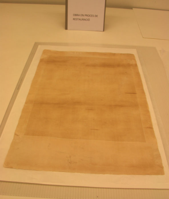 Desconeixem en quines condicions es trobava, però l’estat de conservació al 1970, quan l’obra va ingressar al museu amb la resta de la donació, ja era greu. La documentació tècnica consultada mostra enfosquiment i taques antiestètiques de decoloració, probablement produïdes com a conseqüència d’alguna intervenció puntual.