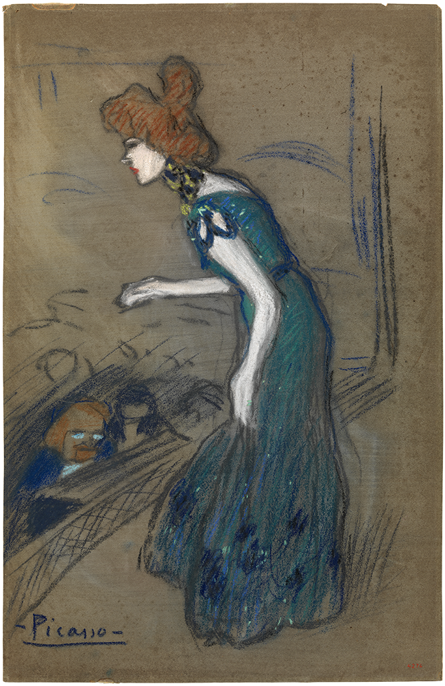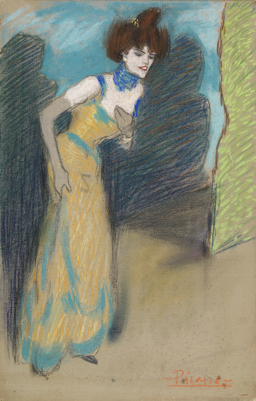 Pablo Picasso. El final del número. París, 1901. Pastel sobre tela. 73 x 47 cm. Aportació de l’Ajuntament de Barcelona, 1963. MPB 4.270 | Pablo Picasso. "La diseuse". París, 1901. Carbonet i pastel sobre paper. 47 x 30 cm. Aportació de l’Ajuntament de Barcelona, 1963. MPB 4.276