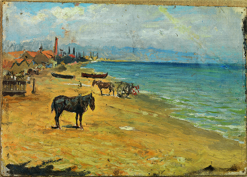 Pablo Picasso. Platja de la Barceloneta. Barcelona, 1896. Oli sobre tela. 24,4 x 34 cm (irregular). Donació Pablo Picasso, 1970. MPB 110.073