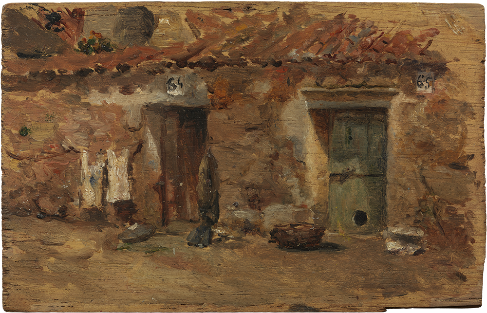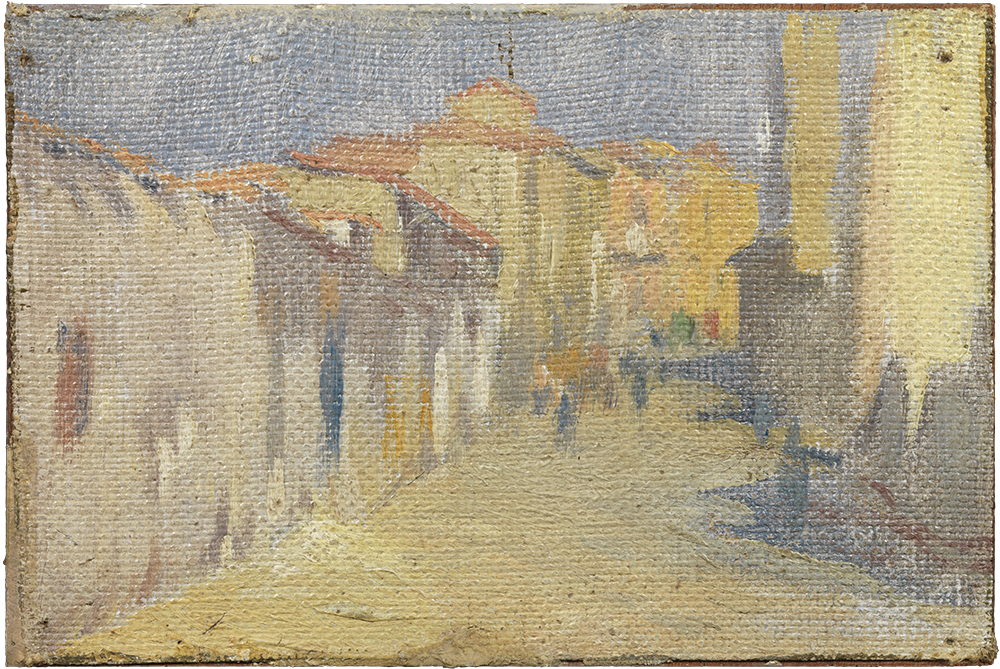 Pablo Picasso. Cases d'Horta de Sant Joan. Horta de Sant Joan, 1898-1899. Oli sobre tela adherida sobre fusta. 10,7 x 19,5 cm. Donació Pablo Picasso, 1970. MPB 110.107 | Pablo Picasso. Vista d'un carrer d'Horta de Sant Joan. Horta de Sant Joan, 1898-1899. Oli sobre tela adherida sobre fusta. 9,4 x 14,1 cm. Donació Pablo Picasso, 1970. MPB 110.120
