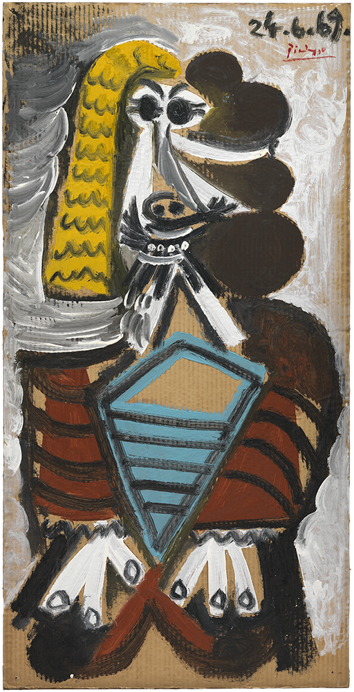 Pablo Picasso. Home assegut. Mougins, 24 de juny del 1969. Oli sobre cartó ondulat industrial. 129,5 x 65 cm (irregular). Donació Pablo Vilató, 1987. MPB 112.867