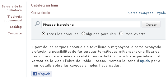 Com veureu, la cerca bàsica és molt simple i funciona com un cercador de text lliure a diversos camps alhora. L’avançada us permetrà, entre d’altres coses, seleccionar tipologia de documents i llengües en què estan publicats.