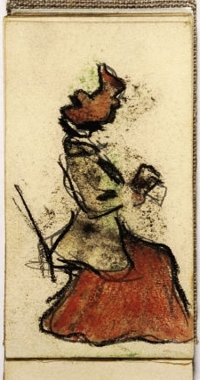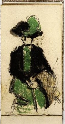 Dama, de cara, amb bastó. Picasso. París, 1900. Llapis grafit, aquarel·la i pastel sobre paper