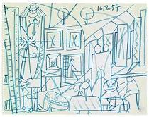 Pablo Picasso - Esbós per a Las Meninas - Cannes, 16 d'agost de 1957 - llapis de color blau sobre paper - donació Catherine Hutin, 2009