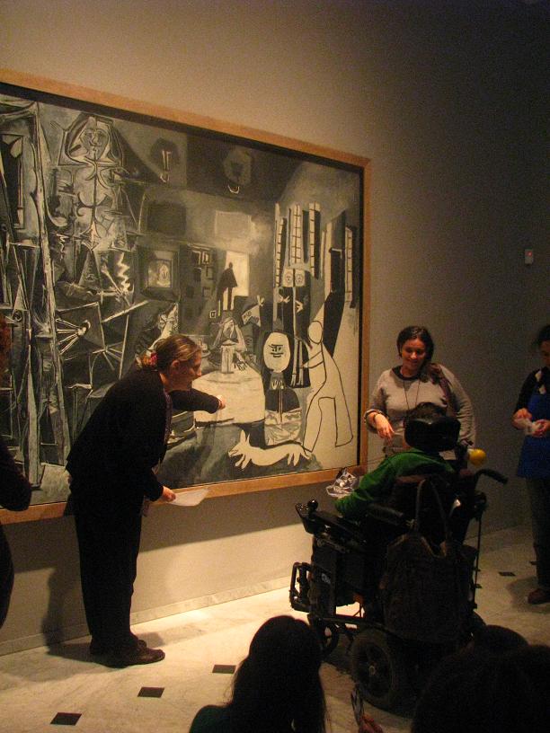 Els alumnes van seguir la visita-taller “Las Meninas, una sèrie” i “Sentir Picasso”, en dos dilluns consecutius. Vam oferir fer-les en aquest dia de la setmana perquè és quan el museu tanca al públic, i ens permet treballar amb grups amb necessitats específiques amb més tranquil·litat.
