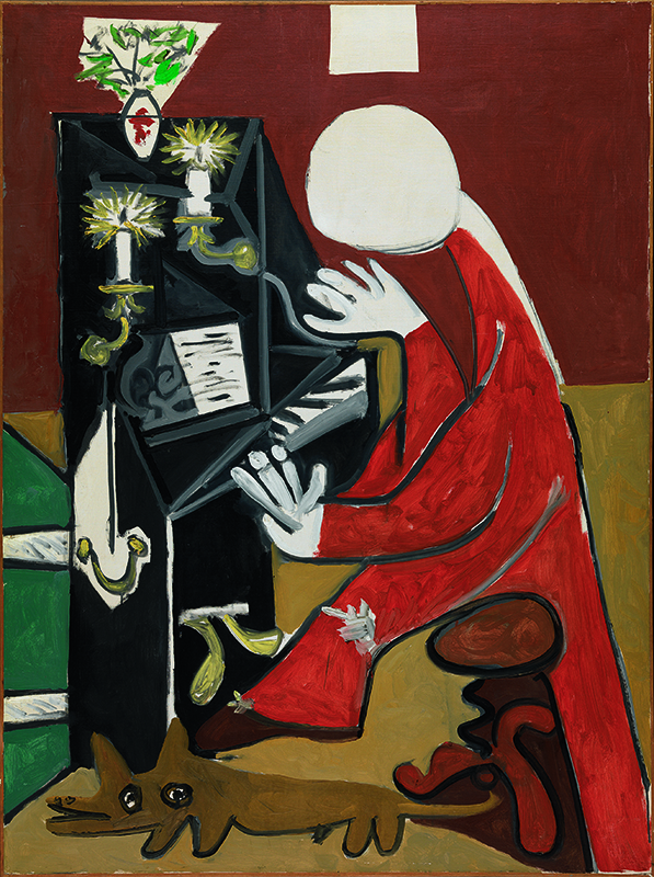 El piano. Pablo Picasso, Canes, 17 d’octubre del 1957. Oli sobre tela. 130 x 96 cm. MPB 70.472 | Retrat de Jacqueline. Pablo Picasso, Canes, 3 de desembre del 1957. Oli sobre tela. 116 x 89 cm. MPB 70.489 |Jaume Sabartés com un faune tocant l'aulos. Pablo Picasso, Antibes, 14 d’octubre del 1946. Oli i carbonet sobre paper. 65 x 50 cm. MPB 113.143