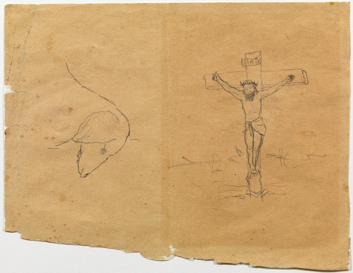 Cap de gos i Crist crucificat Cap de gos i Crist crucificat Cap de gos i Crist crucificat Autor Pablo Picasso Títol Cap de gos i Crist crucificat Lloc d'execució La Corunya Tècnica Llapis grafit sobre paper Dimensions 15.8 cm x 20 cm Número de registre MPB 110.999 Necessites una reproducció d'aquesta obra? Tota documentació és per definició un treball en curs. Si tens informació addicional sobre aquest registre o hi detectes cap error, envia'ns els teus comentaris. Col·leccions Dibuix Exposicions 2015- "O primeiro Picasso. A Coruña 2015". Museo de Belas Artes da Coruña, la Corunya (Espanya) 1995-1996- "The Love and the Anguish - The Road to Guernica". Tobu Museum of Art, Tòquio (Japó) 1995- "The Love and the Anguish - The Road to Guernica". National Museum of Modern Art, Kyoto (Japó) 1993- "Corps Crucifiés". Musée des Beaux-Arts, Montreal (Canadà) 1992-1993- "Corps Crucifiés". Musée national Picasso-Paris, París (França) Obres de La col·lecció relacionades Enllaç cap a obra Escena taurina Escena taurina Enllaç cap a obra Escena de la passió de Crist Escena de la passió de Crist Enllaç cap a obra Cap de gat Cap de gat