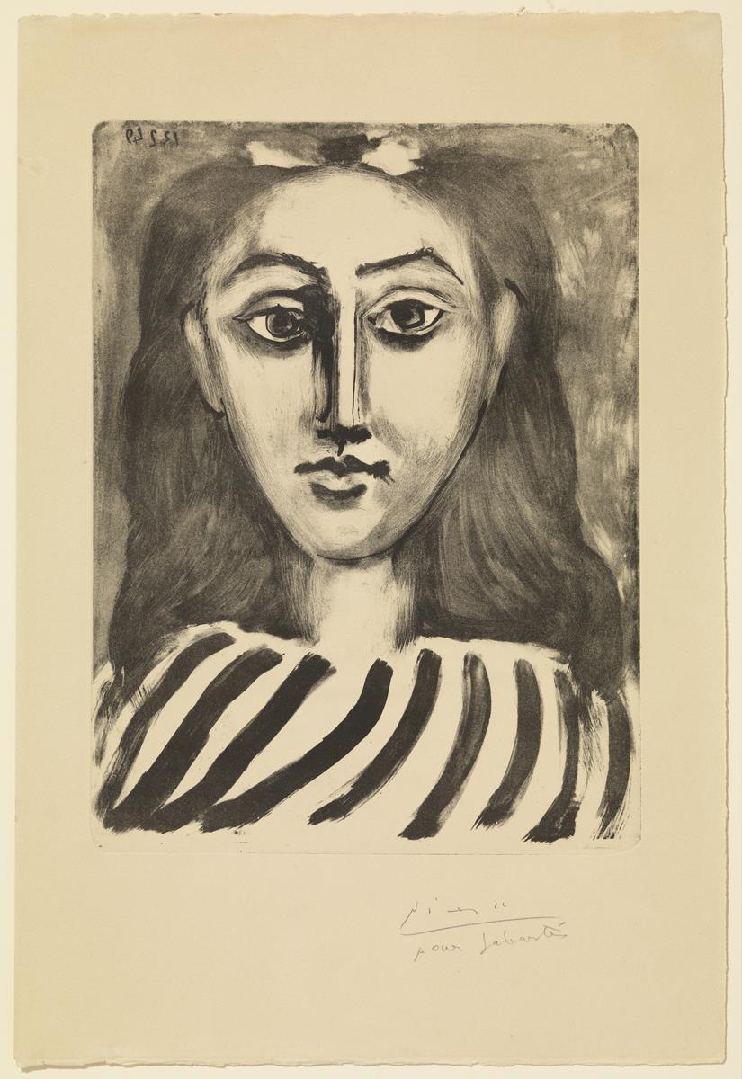 Cap de noia Cap de noia Cap de noia Autor Pablo Picasso Títol Cap de noia Lloc d'execució França Tècnica Litografia. "Lavis", raspador i paper de vidre sobre zinc; estampat sobre paper vitel·la Arches (prova Sabartés, II estat i definitiu) Dimensions 57.3 cm x 38.6 cm Número de registre MPB 70.189 Necessites una reproducció d'aquesta obra? Tota documentació és per definició un treball en curs. Si tens informació addicional sobre aquest registre o hi detectes cap error, envia'ns els teus comentaris. Col·leccions Obra gràfica