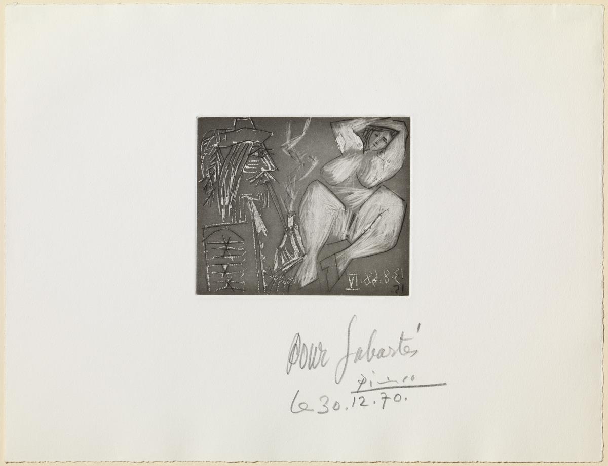Aiguatinta al sucre, punta seca i raspador sobre coure; estampat sobre paper vitel·la Rives (prova Sabartés, II estat i definitiu)