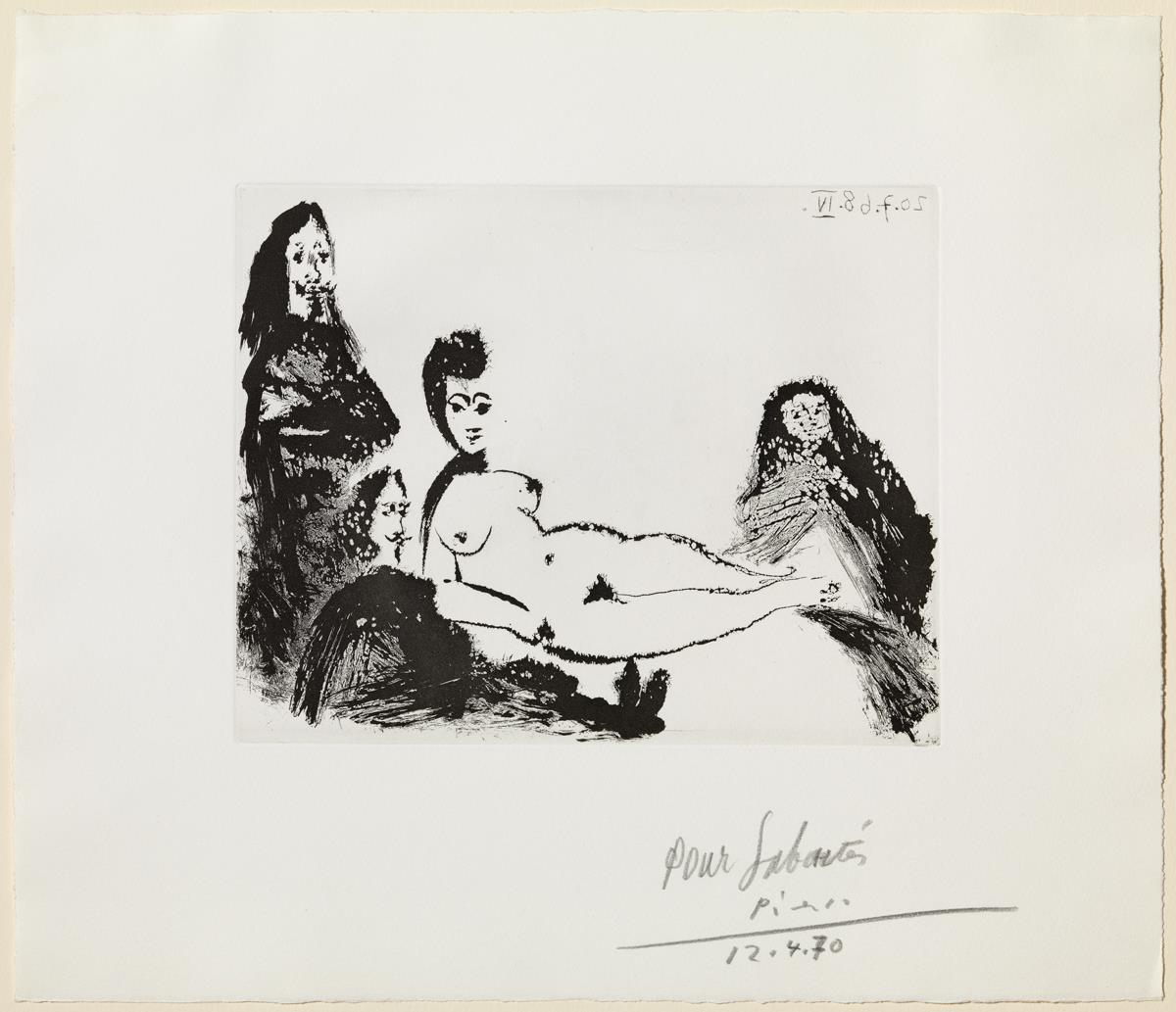 Aiguatinta al sucre i punta (data) sobre coure greixat; estampat sobre paper vitel·la Rives (prova Sabartés)