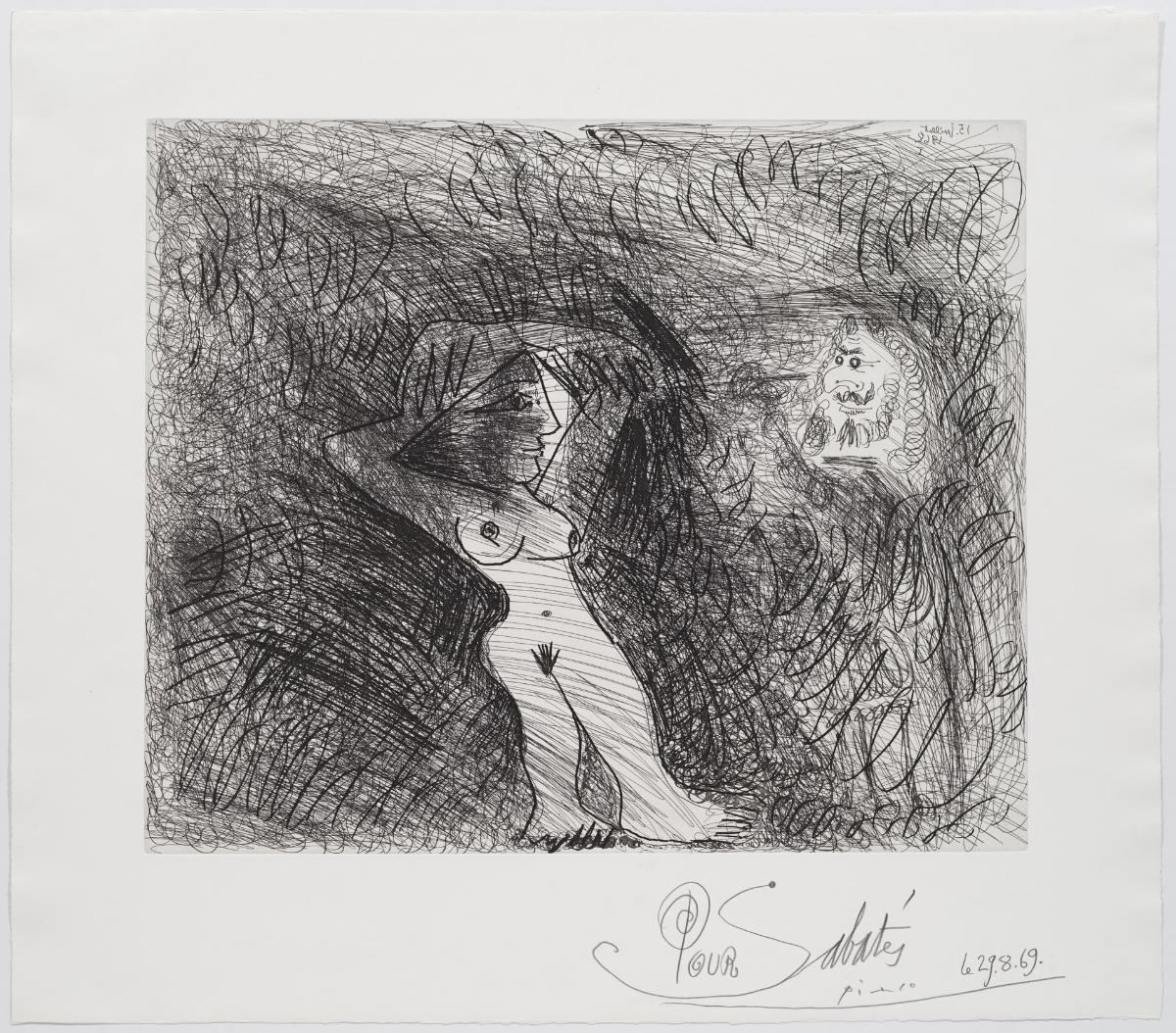 Aiguafort sobre coue; estampat sobre paper vitel·la Rives (prova Sabartés, II estat i definitiu)