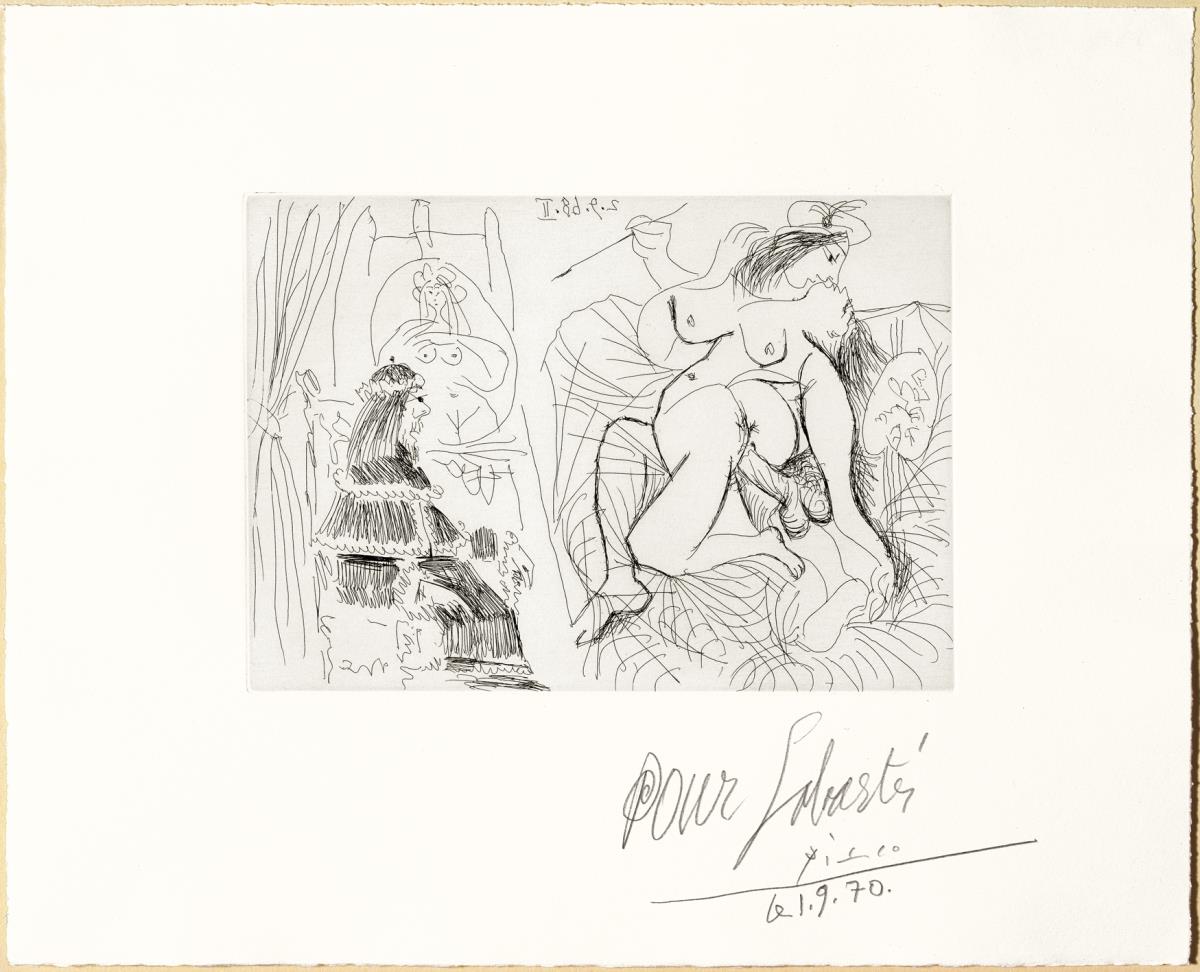 Aiguafort sobre coure; estampat sobre paper vitel·la Rives (prova Sabartés)