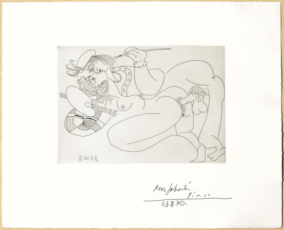 Aiguafort sobre coure; estampat sobre paper vitel·la Rives (prova Sabartés)