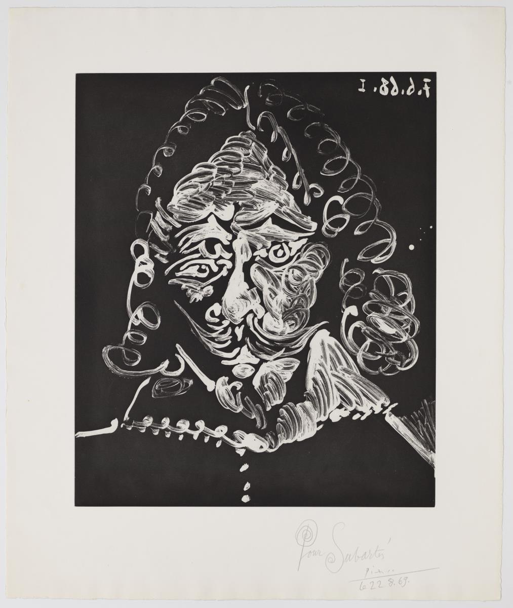 Aiguatinta (reserves al vernís en el granejat) sobre coure; estampat sobre paper vitel·la Rives (prova Sabartés)
