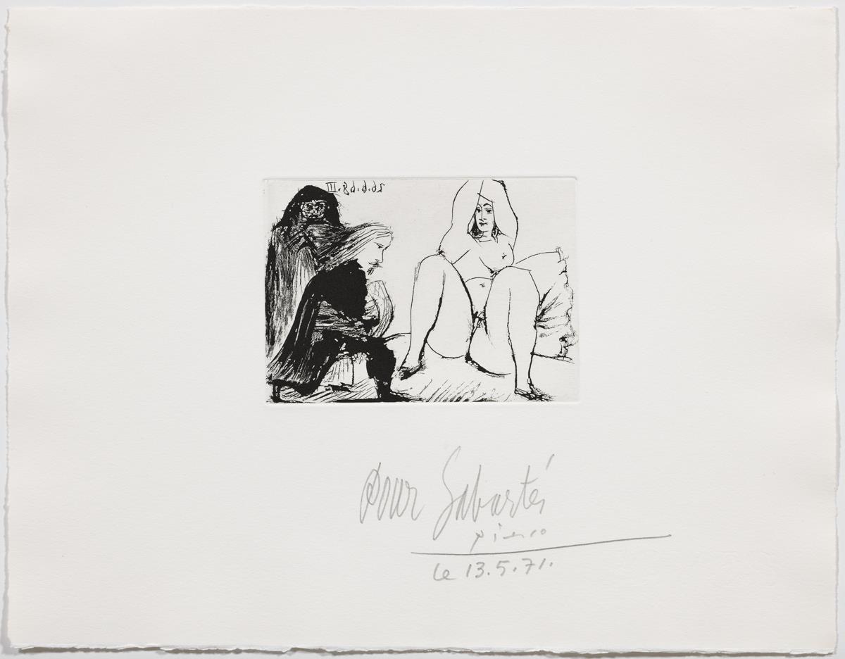 Sugar-lift aquatint on greased copper; printed on Rives vellum paper (Sabartés proof)